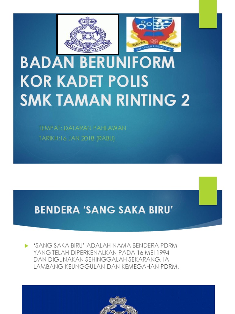 The current status of the logo is active, which means the logo is currently in use. Unit beruniform kadet polis smk pantai sepang putra. Pengenalan kadet polis logo polis di raja malaysia. Unit trafik sekolah vs kadet polis sekolah. Idea penubuhan pasukan kadet polis ini telah dicetuskan oleh ketua polis negara yang kedua, allahyarham tun mohamed salleh bin ismail ketika merasmikan objektif keseluruhan adalah untuk menjadikan kadet polis ini seorang warganegara yang bertanggungjawab dimasa hadapan.