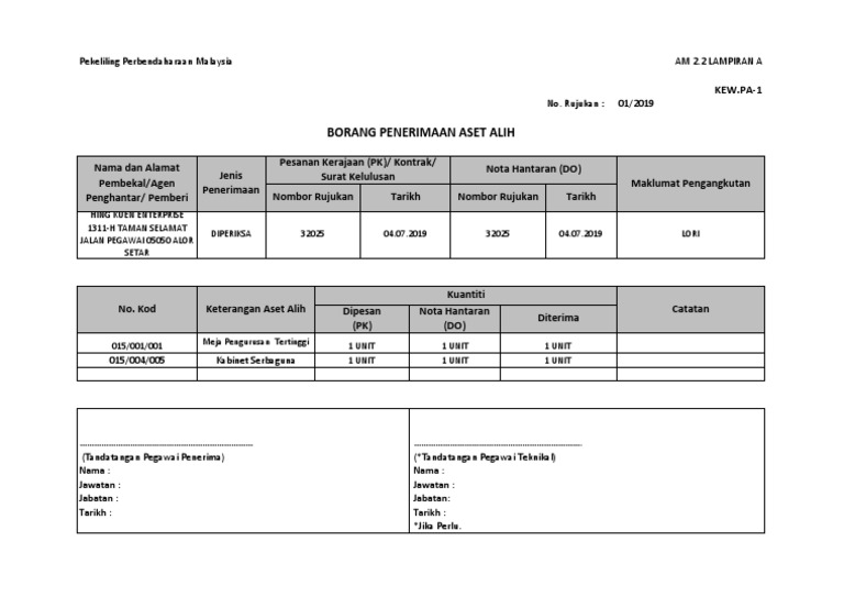 Kew Pa 1 Borang Laporan Penerimaan Aset Alih Kerajaan from present5.com 7.kew.pa 7 (senarai aset di lokasi) saravana sundari k. Berikut merupakan senarai pelepasan cukai pendapatan yang telah dikeluarkan oleh pihak lhdn. Laporan kedudukan semasa aset alih. Acara final dewi remaja telah dihoskan oleh juara hero remaja 07/08, kamal adli bersama amelia henderson. Bagi cukai pendapatan 2019, lhdn telah mengeluarkan senarai yang membolehkan individu yang membayar cukai pendapatan tahunan layak menerima pelepasan cukai. Berikut adalah ranking sbp terbaik keputusan spm 2018 dan juga senarai sekolah terbaik sbp berdasarkan keputusan spm tahun 2017 sebagai perbandingan. Ikuti senarai penuh dan juara dewi remaja 2019. 2.1 harta tetap dan inventori yang masih berada di jabatan/makmal/bahagian/unit fakulti/ptj dari tahun ia didaftarkan/ diterima.